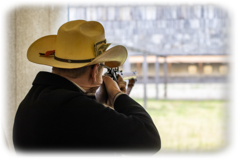 Het schieten doen we met wapens die ooit gemaakt zijn voor het schieten met zwartkruit, of replica’s ervan. Dat kan variëren van de voorladers, achterladers of zelfs grendelgeweren gemaakt voor zwartkruitpatronen.