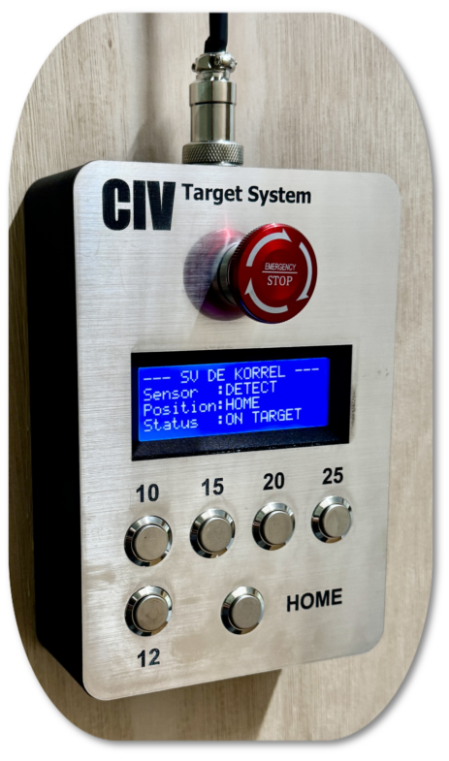 - Stop, Schijven wisselen; d.w.z. u kunt de schietschijf naar u toehalen en verwisselen voor een nieuwe schietschijf en daarna weer naar voren sturen.